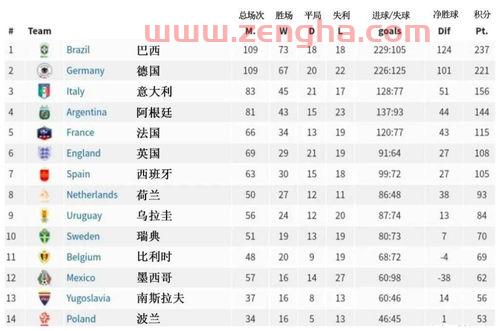 6、中国足球在世界杯历史更好成绩排第37名。1998年,中国男足以混合编队的新形式,在曼谷亚运会上,夺得了铜牌,因此在国际足联的年终排名上,一下子跃升到世界第37位,取得了中国足球史上更高的世界排名。