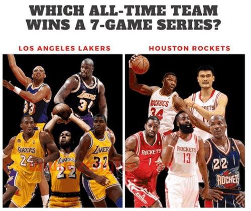 两支球队的历史更佳阵容是赛季一家美国媒体评选的,火箭历史更佳阵容为:控卫哈登,分位德雷克斯勒,小前锋麦迪,大前锋摩西马龙,中锋大梦奥拉朱旺。姚明和弗朗西斯也是入选了替补阵容。