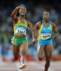 谢莉·安·弗雷泽 进入2008年,弗雷泽的成绩有了长足的提高。她先是在巴西贝伦的国际田联大奖赛上以11秒28获得了女子百米的第三名,继而又在英国伦敦进行的国际田联超级大奖赛上紧随师姐坎贝尔,以10秒95拿到银牌。