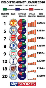 4、根据这个规则,2008年的英超冠军将得到5000万以上的收入,其中1500万属于冠军奖金,另外再加上电视转播分成。