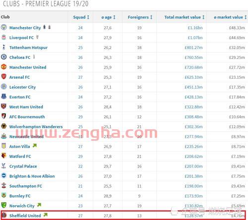 英格兰超级联赛排名如下:曼彻斯特城,绰号“蓝月亮”,前身为成立于1880年的“圣马可堂”,1887年改名为阿德维克,1894年更为现名。曼城共夺得7座英格兰顶级联赛冠军、6座英格兰足总杯冠军和8座英格兰联赛杯冠军。